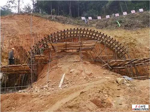 而管棚是在进洞口的地质条件非常差(如:沙土、破碎严重的岩石、黄土等)的情况下使用,一般长度就20-30米左右,管棚为壁厚3.5mm的钢管,直径一般为108mm。当然洞内地质条件非常差的时候也可以用管棚(如:洞内遇到冒顶现象造成的沿洞轴线长度较大,放量较大)。